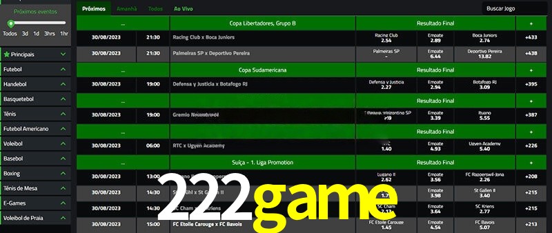 As apostas esportivas da 222game.com são a melhor maneira de apostar nos seus esportes favoritos, seja ao vivo ou antes do jogo. Com uma enorme seleção de promoções e oportunidades de ganhar muito, nossa plataforma o manterá entretido por horas e horas! Você nunca ficará sem coisas divertidas para fazer na 222game.com, porque sabemos como tratar bem os nossos clientes!